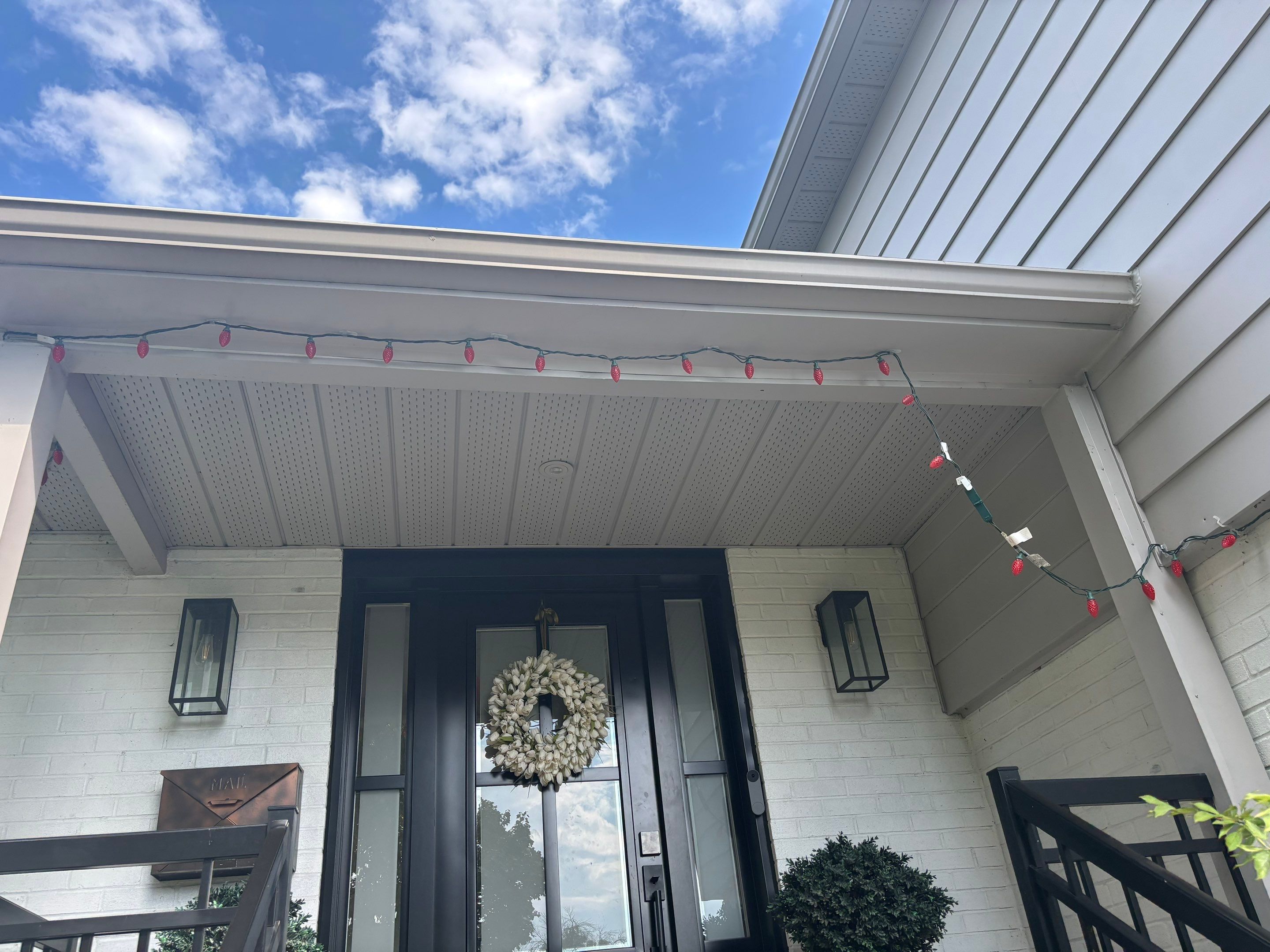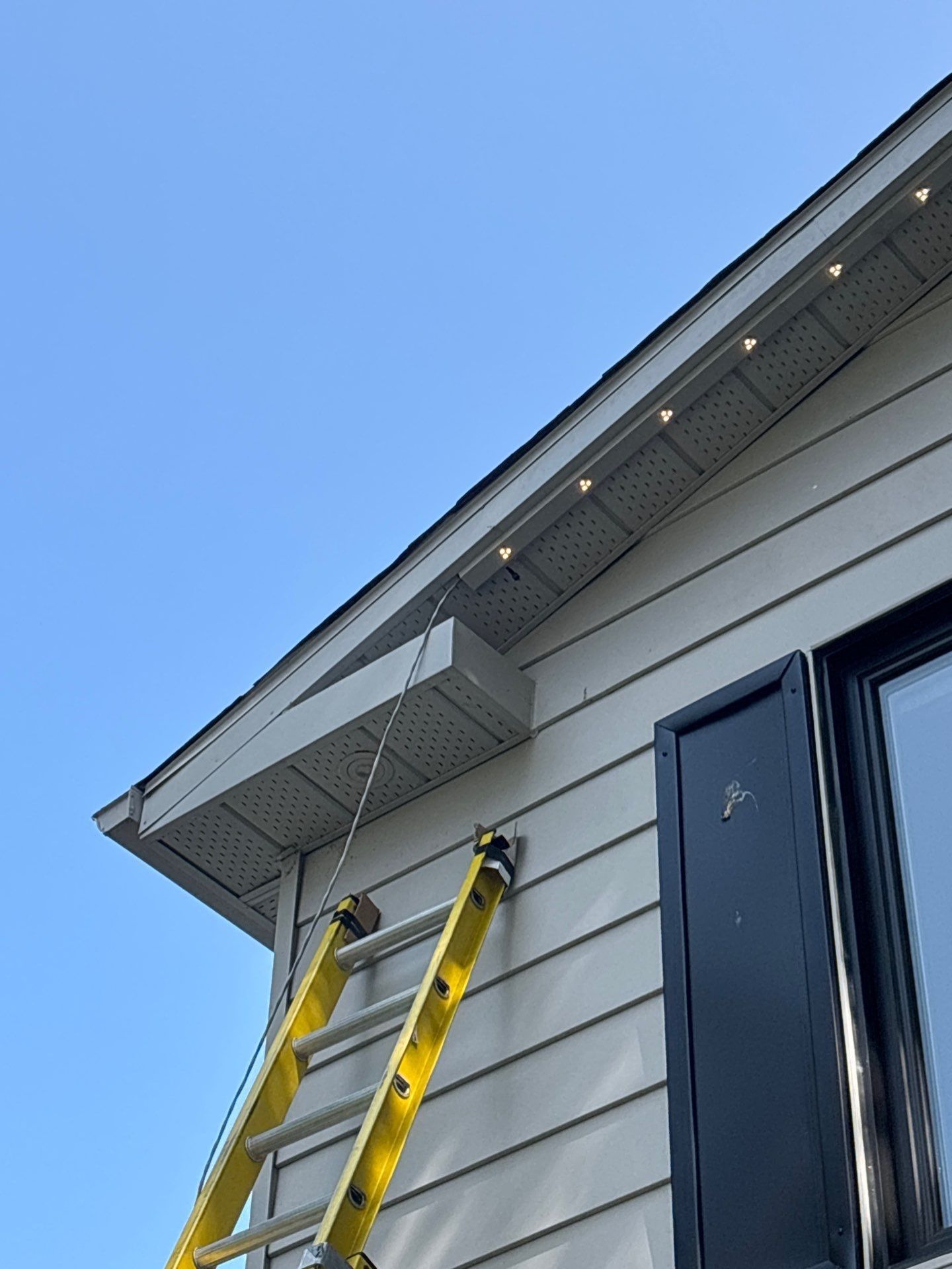Après avoir discuté de ses besoins, notre équipe a proposé les Gemstone Lights — un système d'éclairage extérieur permanent LED sous les avant-toits qui s'installe une seule fois et reste en place pour de bon. Les petites lumières LED sont fixées directement sur les soffites de la maison. Le jour, on les remarque à peine. Le soir venu, elles peuvent s'allumer dans n'importe quelle couleur, créer n'importe quel motif ou ambiance.